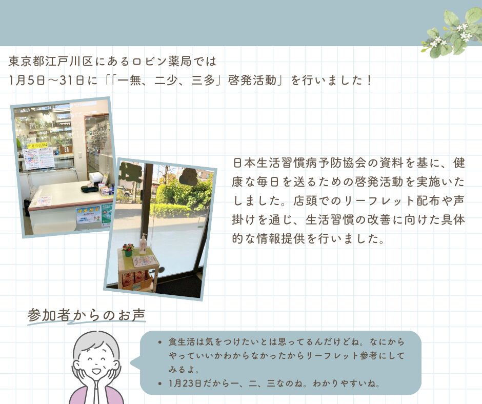 ロビン薬局 「一無、二少、三多」啓発活動実施について
