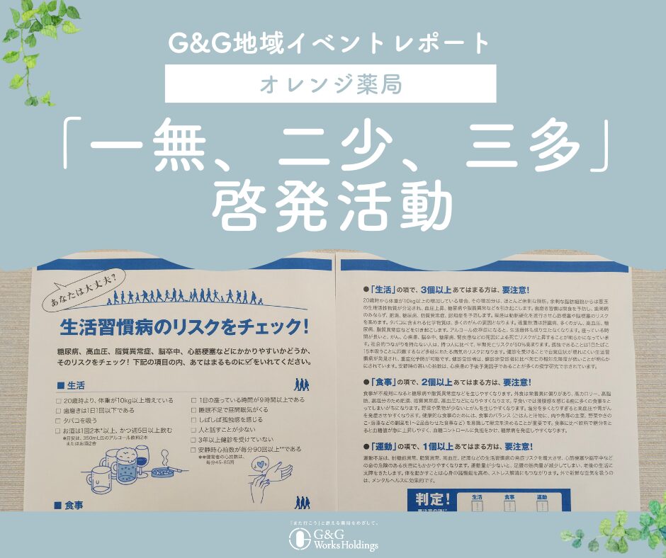 《地域イベントレポート》 オレンジ薬局 「一無、二少、三多」啓発活動の実施