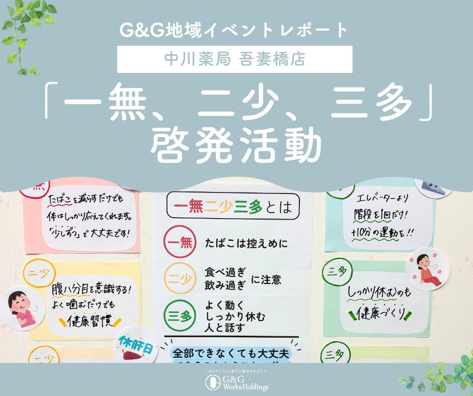 《地域イベントレポート》 中川薬局 吾妻橋店 「一無、二少、三多」啓発活動の実施
