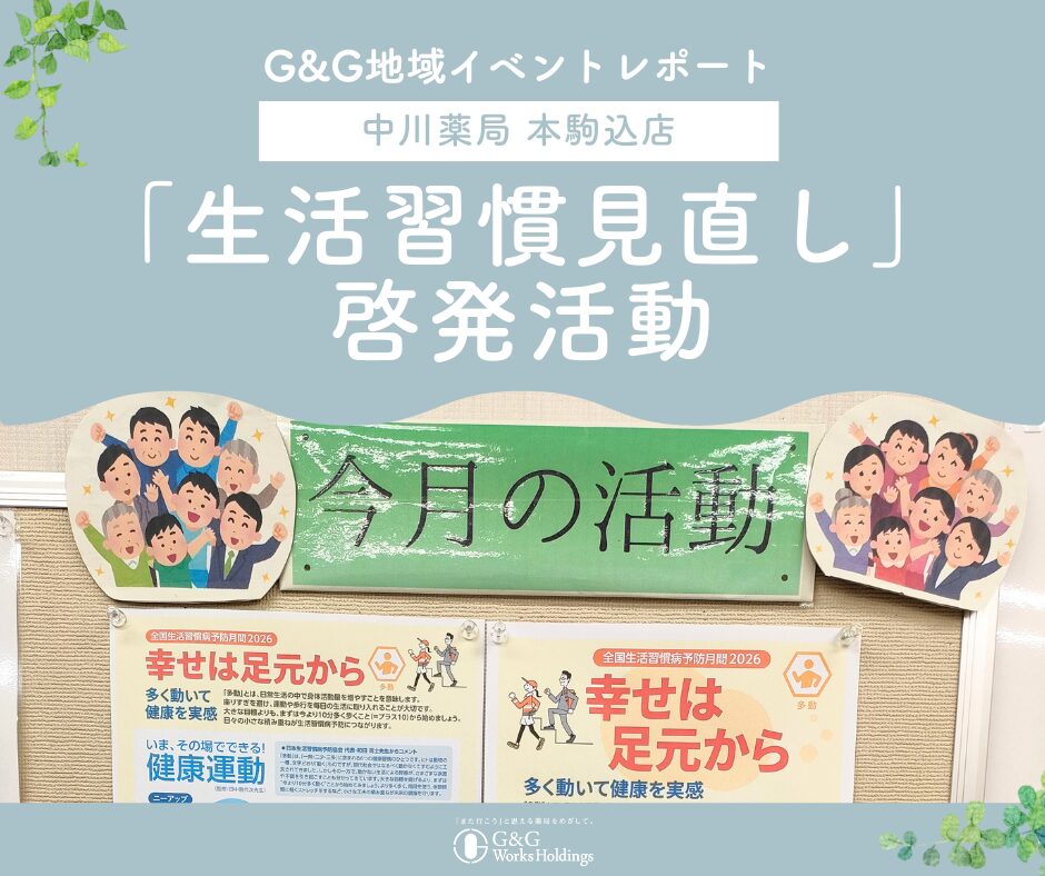 今後も、G&Gワークスホールディングスでは地域の皆さまの健康増進に貢献できるよう、引き続き努めてまいります。