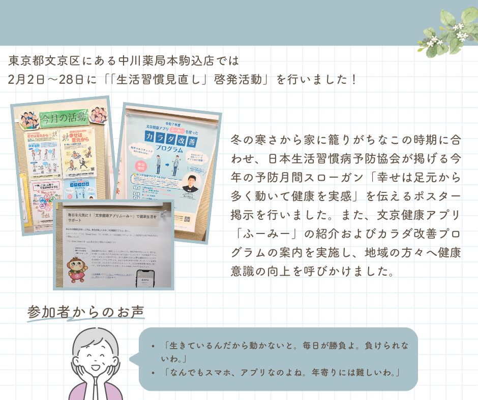 中川薬局 本駒込店 「生活習慣見直し」啓発活動の実施について