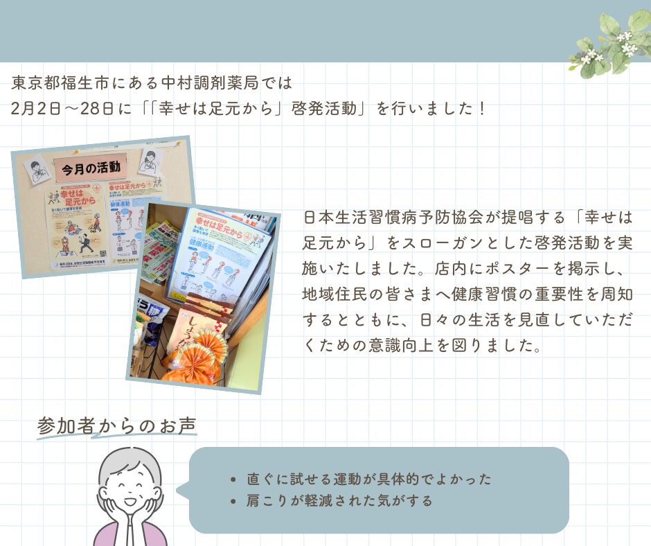 中村調剤薬局 「幸せは足元から」啓発活動実施について