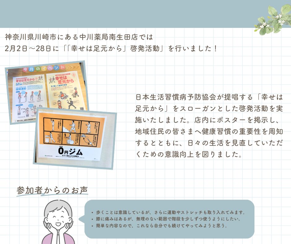 中川薬局 南生田店 「幸せは足元から」啓発活動実施について