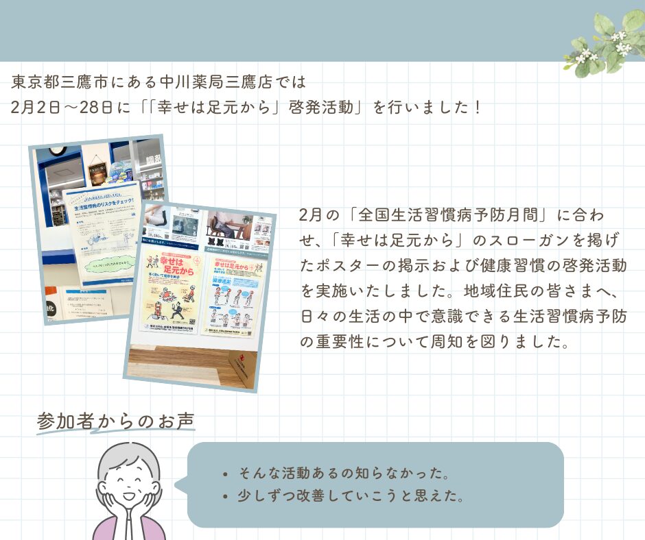 中川薬局 三鷹店 「幸せは足元から」啓発活動実施について