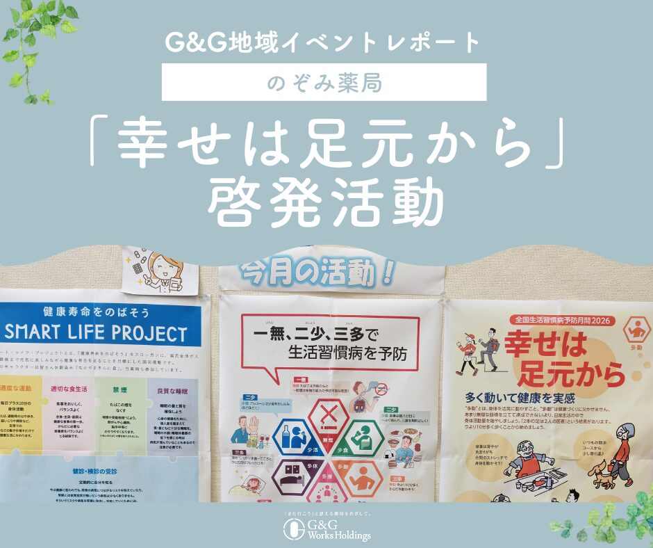今後も、G&Gワークスホールディングスでは地域の皆さまの健康増進に貢献できるよう、引き続き努めてまいります。