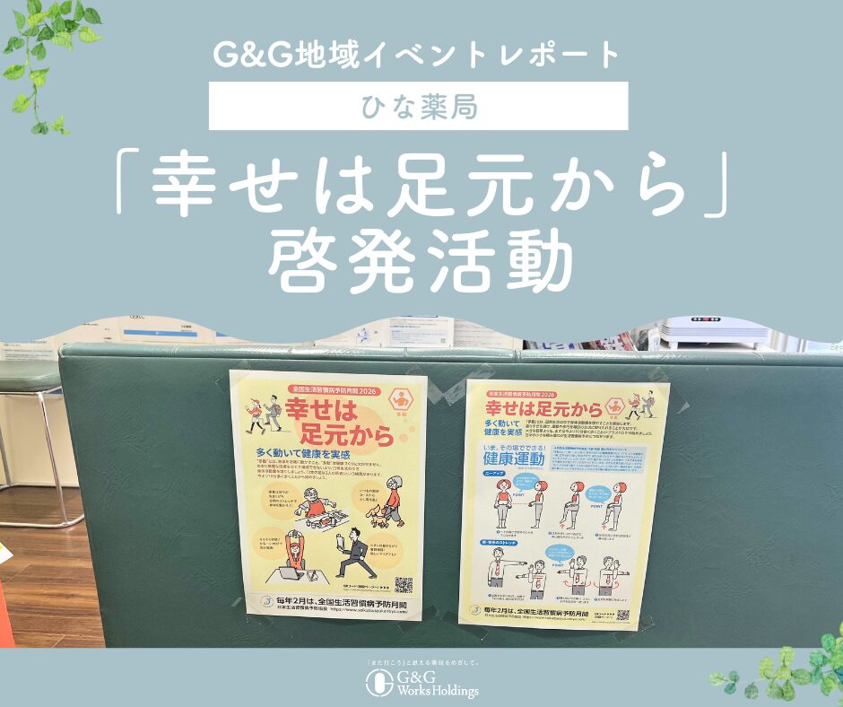 今後も、G&Gワークスホールディングスでは地域の皆さまの健康増進に貢献できるよう、引き続き努めてまいります。