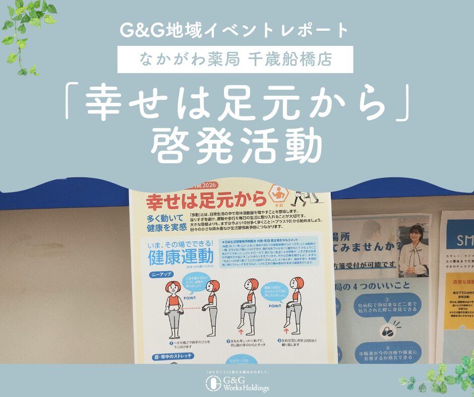 今後も、G&Gワークスホールディングスでは地域の皆さまの健康増進に貢献できるよう、引き続き努めてまいります。