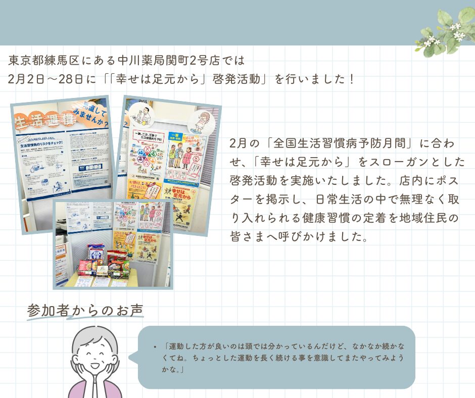 中川薬局 関町2号店 「幸せは足元から」啓発活動実施について