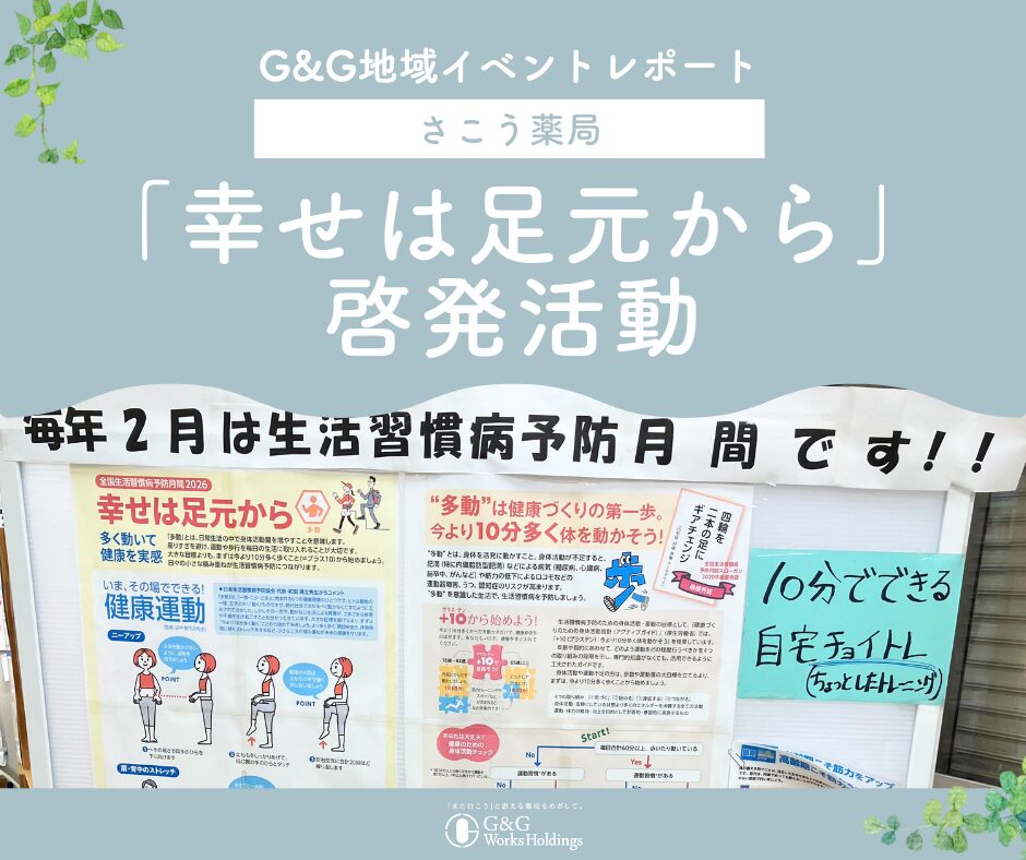 今後も、G&Gワークスホールディングスでは地域の皆さまの健康増進に貢献できるよう、引き続き努めてまいります。