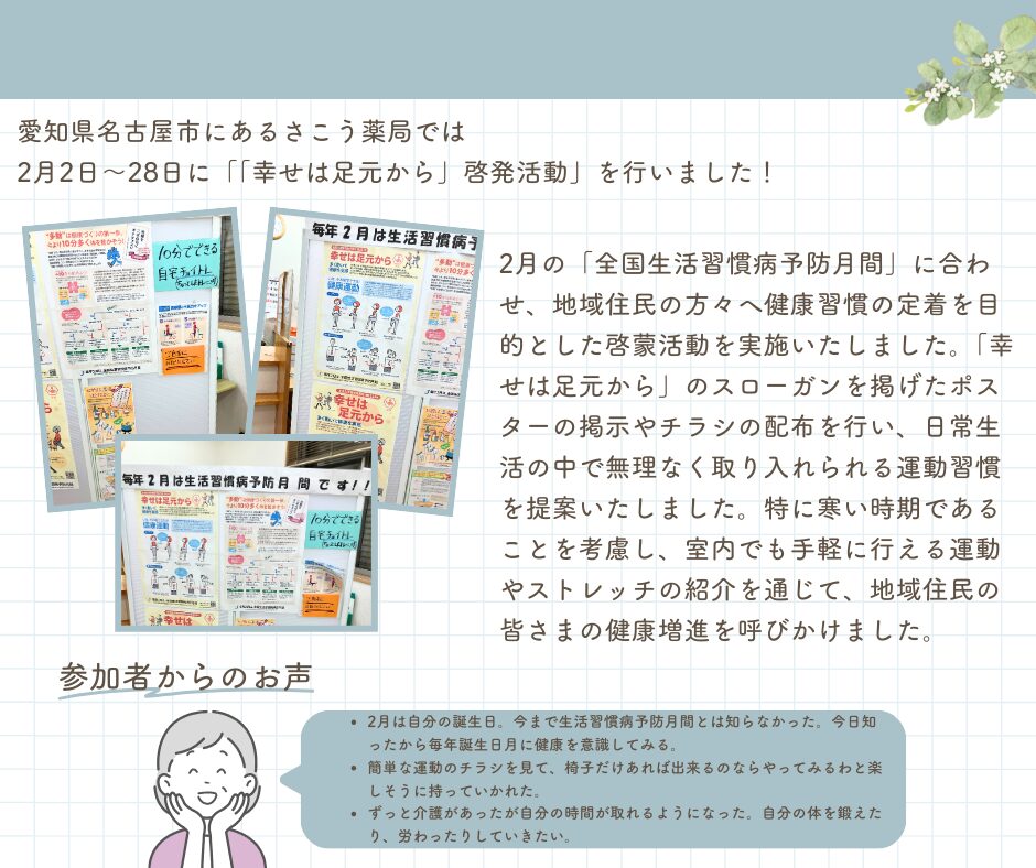 さこう薬局 「幸せは足元から」啓発活動実施について