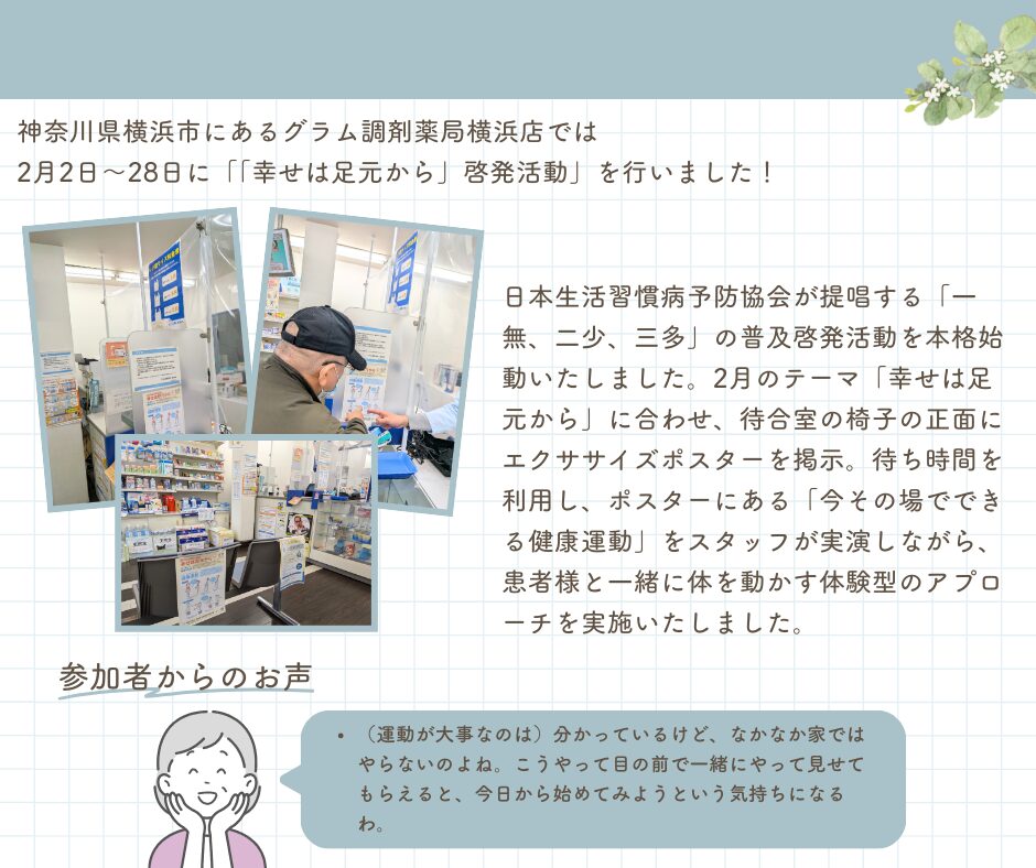 グラム調剤薬局 横浜店 「幸せは足元から」啓発活動実施について