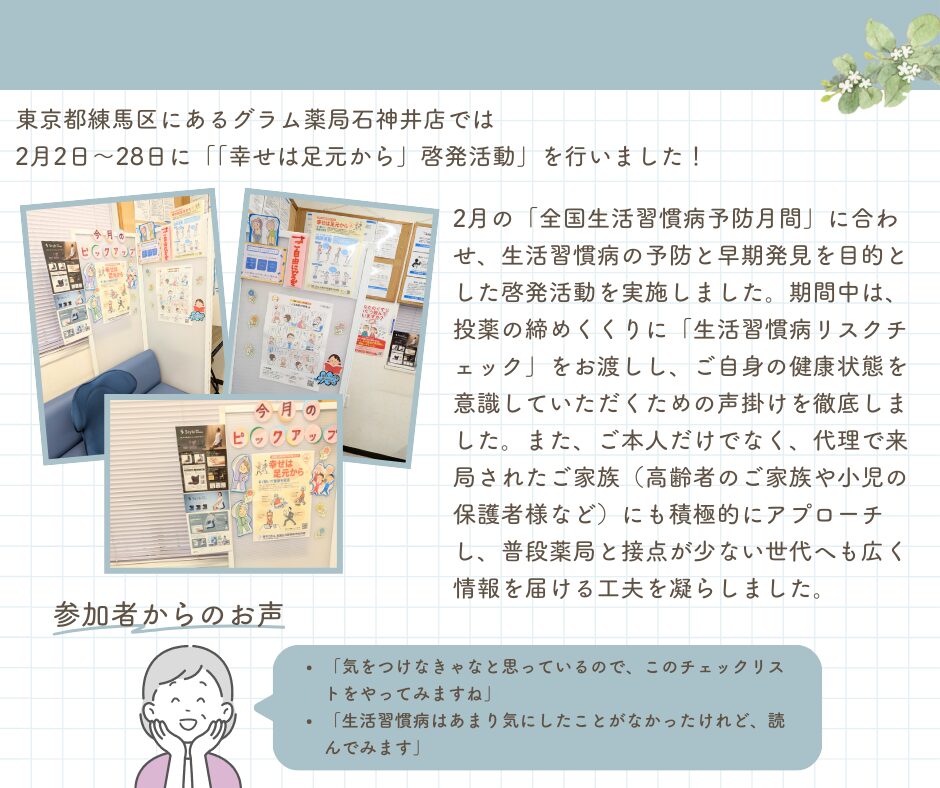 グラム薬局 石神井店 「幸せは足元から」啓発活動実施について