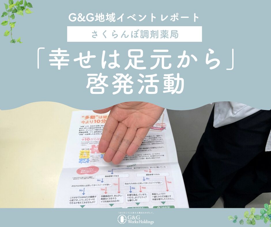今後も、G&Gワークスホールディングスでは地域の皆さまの健康増進に貢献できるよう、引き続き努めてまいります。