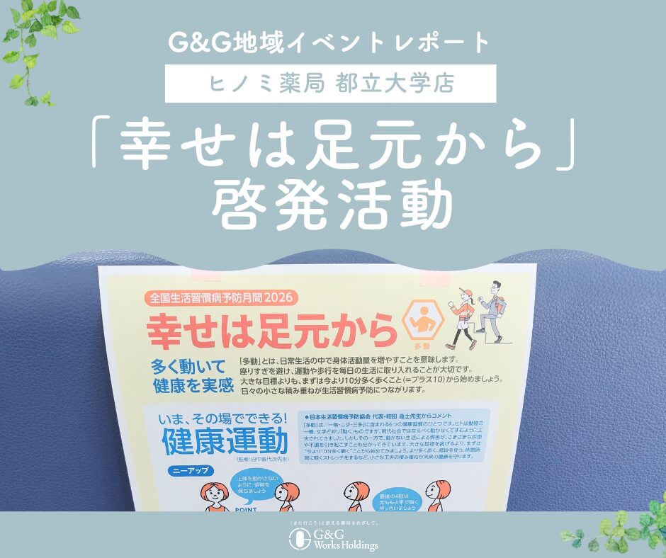 今後も、G&Gワークスホールディングスでは地域の皆さまの健康増進に貢献できるよう、引き続き努めてまいります。