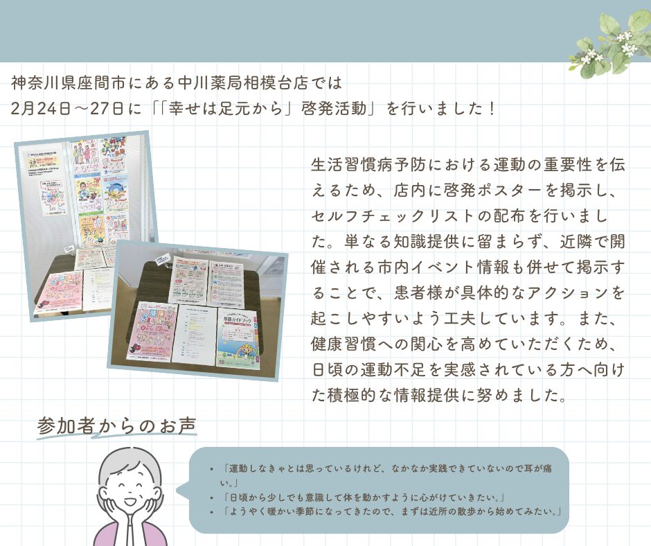 中川薬局 相模台店 「幸せは足元から」啓発活動実施について
