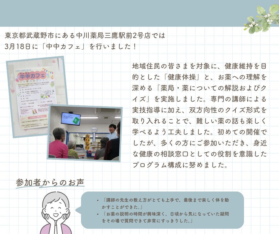 《地域イベントレポート》 中川薬局 三鷹駅前2号店 中中カフェ開催